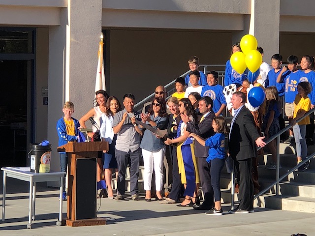 Earlier this month La Crescenta Elementary School held a ribbon cutting ceremony to officially open its new building that replaced 14 classrooms, including bungalows, with 16 new technically advanced classrooms. A bonus is that the building has a smaller footprint than the old bungalows that were previously in place.