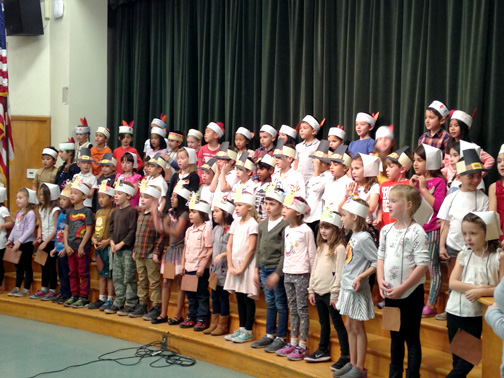 Dunsmore Elementary School continued its Thanksgiving tradition of having the first grade students perform for parents. First grade teachers Theresa Cortes, Joseph Sloane and Rain Gibney practiced traditional Thanksgiving songs, such as “Over the River” and chants, “Gobble, Gobble,” with their students in anticipation of the Thanksgiving break.