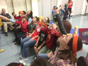 One of the events the Dad’s Club has taken on is a time-honored tradition at Lincoln – the Mother Son Olympics. For the last three years, the Dad’s Club has organized and run the event held in the school’s cafeteria and hallways. This year the event, held on Nov. 13, featured ten games of skill and chance were the events and two-person teams of mother and son competed for bronze, silver and gold medals. Events included a ring toss, sand bag toss, three-legged relay race, face based cookie balancing and a small putting green, among several others.