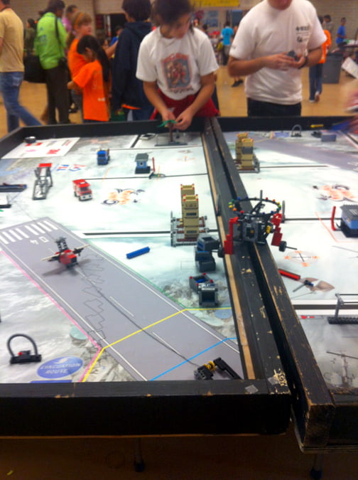 The final competition is when the robots come in. With LEGO’s Mindstorm Platform, these teams had to figure out how to program a robot to go through a pre-determined obstacle course. While the teams do have mentors to help them figure out how to build and program a robot, all the work is done by the kids. For example, the mentors may teach their team an algorithm for turning, but it is up to the team to figure out how to utilize that algorithm so their robot can actually turn.
