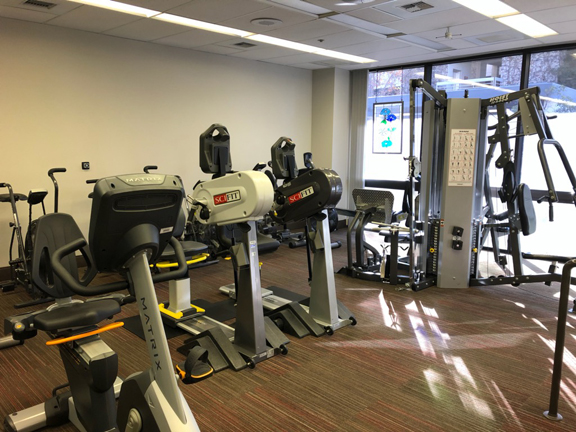 The Cardiac Rehab and Fitness Center at USC-VHH includes a multi-station strength machine, free weights, treadmills, bicycles and a stair stepper.