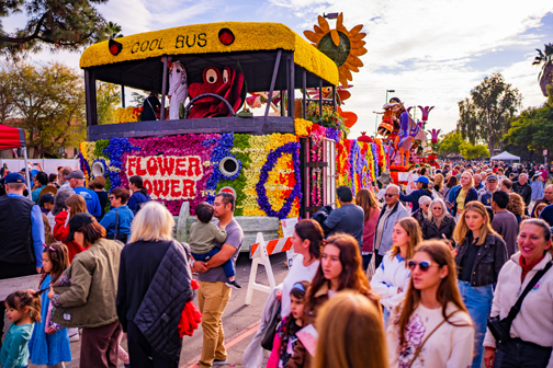 The 2024 Rose Parade, a bacchanal of floral beauty, creative design and plant-covered characters, once again captivated viewers with its botanical masterpieces earlier this week as they rolled down Colorado Boulevard in Pasadena. Among the floats, the La Cañada Flintridge Tournament of Roses Association’s entry “Flower Power” was notable not just for its tie-dye design and anthropomorphic flower musicians, but also for the community spirit it embodied. This year’s float, part of a tradition dating back to 1978, was a culmination of thousands of volunteer hours, encapsulating the community’s dedication to artistry and innovation.