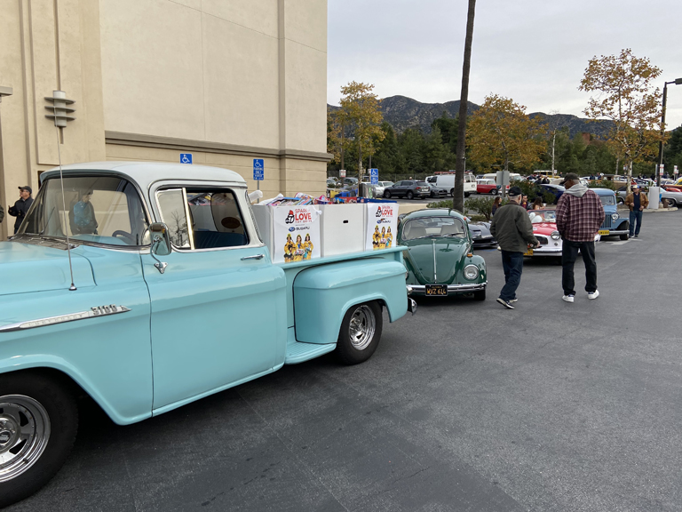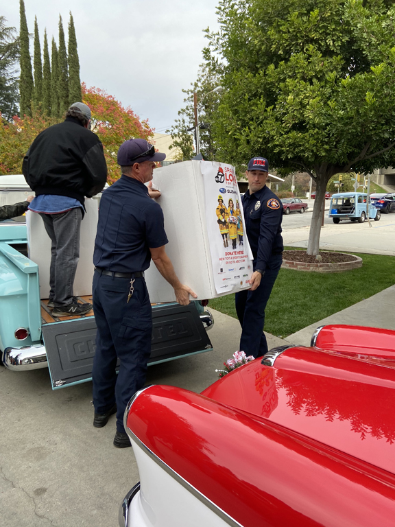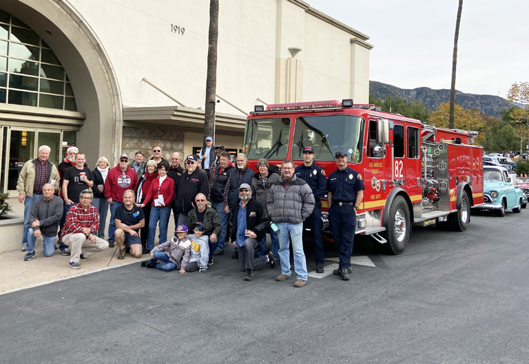 Every Saturday, the Early Rodders meet in the parking lot of the Regal UA La Cañada theaters but once a year they turn that meeting of “gear heads” into a meeting of Santa’s helpers. They fill their classic cars with toys and drive them to Los Angeles County Fire Dept. – Station 82. For eight years students and staff from St. Andrew Catholic School in Pasadena have donated many of the toys delivered to the fire station by the Early Rodders.