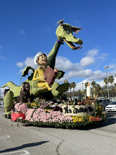 Reflecting this theme was Burbank’s float titled “An Unlikely Tale.” It depicted a large dragon sitting and reading a book alongside a young knight and shaggy dog. The magical float was designed by Burbank resident Jonathan Friday. The Burbank Tournament of Roses Decorations Committee and a group of dedicated volunteers spent hundreds of hours constructing and decorating the float using freshly cut flowers and 1,500 pounds of split peas to create the dragon’s bright green textured skin. Excluding the canceled 2021 parade, this was the third consecutive year that Burbank’s float has won an award and was the 11th award presented to Burbank in the last 12 years.