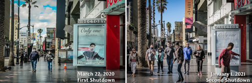 The streets that were almost completely empty during the March 2020 shut down are a little more populated now during the current shut down but things are not anywhere near normal. That is because the virus is still spreading in Los Angeles at an alarming rate with new and even more contagious strains being found throughout the world including in California.