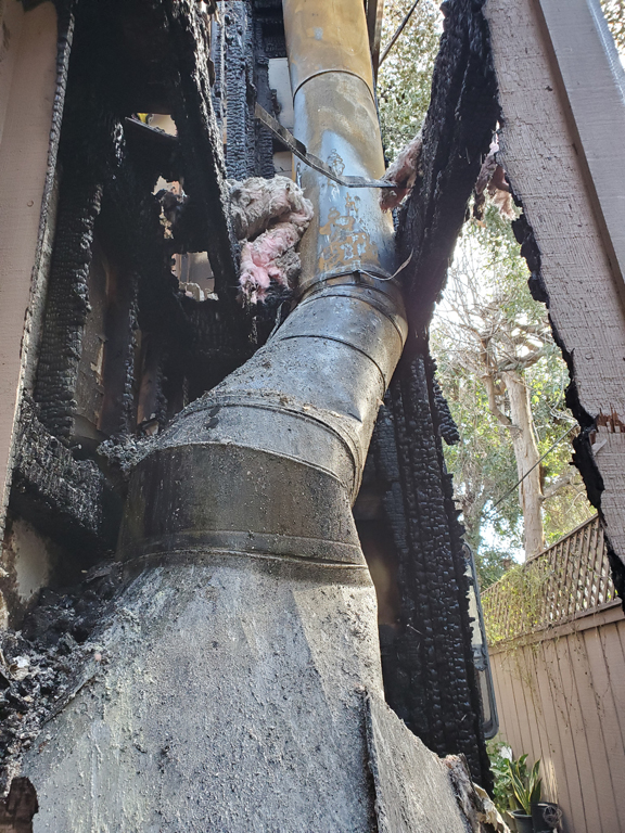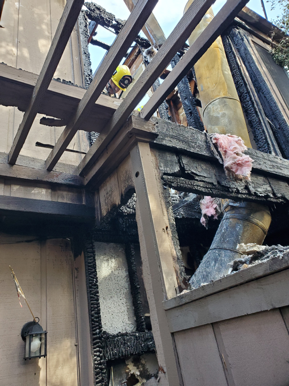 On Tuesday at about 10:40 a.m. units from Glendale Fire Dept. responded to reports of a fire at 56 Northwoods Lane, south of Crescenta Valley High Schoolon Ramsdell Avenue. Gardeners working nearby witnessed smoke and fire coming from the chimney of a townhome and immediately alerted the residents who were able to safely evacuate, according to a Glendale Fire Dept. statement.