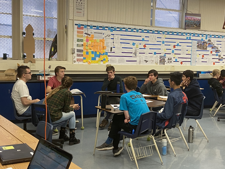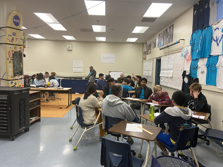 After getting the game assignment on Jan. 4, members of Falkons 589 begin work on their robot.