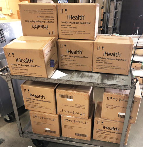 Each student received one kit that contains two at-home rapid COVID-19 tests. Administrators encouraged students to take one of the tests before returning to campus on Tuesday of this week after the three-day weekend.