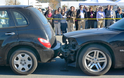 Law enforcement officials in attendance could see how the amount of damage created, even when driving at slow speeds, appeared fairly significant but paled in comparison with the typical destruction of true full speed collisions.
