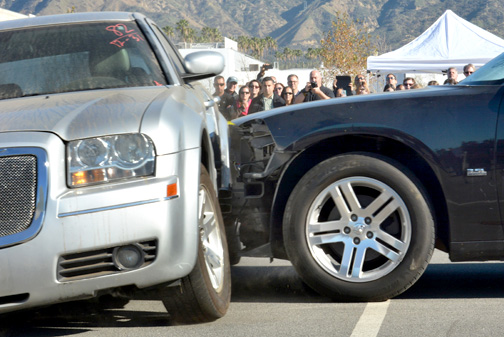 Members of the Glendale and Burbank police departments, as well as emergency medical technicians, watched as members of the SIU rear ended, sideswiped and T-boned cars, while rarely exceeding speeds of seven miles per hour.
