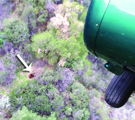 As the Air 5 crew kept an eye on mama bear, Hernandez walked away from the vehicle. Luckily the helicopter noise and wind kept the bear away but Hernandez knew she wasn’t going to stay away for long.
