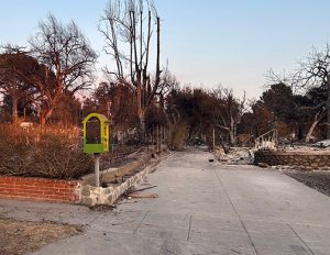 Over the weekend Steve and I had the chance to head to Altadena so I could see firsthand the devastation of the Eaton Fire. It looked to me what I would imagine a war zone looked like: shells of cars parked in front of dirt piles where a house previously stood, empty lots that once held people’s homes and chimneys that indicated where a house once was. Particularly disturbing was seeing a house in apparent perfect condition standing next door to the shell of a house. Another jarring example of the devastation surrounding the Eaton Fire was seeing a Little Library box that looked perfectly fine standing in front of … nothing. The house was gone.