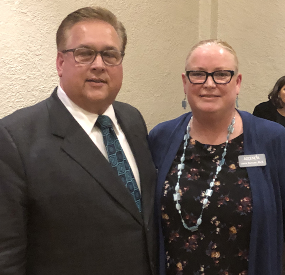 Deacon Ron Baker, president of the Ascencia board of directors, with newly installed executive director Dr. Laura Duncan.