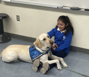 He is not technically a comfort dog, although he does provide comfort to anyone who comes up to pet him. He can perform more than 40 special tricks like opening and closing doors and drawers. Brisket’s training was extensive while he was being raised by his puppy raisers. He – and his training – was sponsored by the Los Angeles Chargers and Lazy Dog Restaurants.