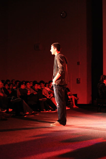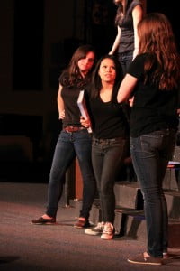 Cast members dressed in dark clothing while portraying their versions of the students’ stories, including a boy who was kicked out of his home by his parents for telling them he was gay. Some parts were done in monologue form, while some were acted out.