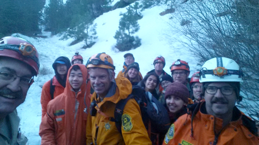 A hiking club from UCLA was full of happy faces after Montrose Search and Rescue team members led them out of the forest in icy, wet weather.