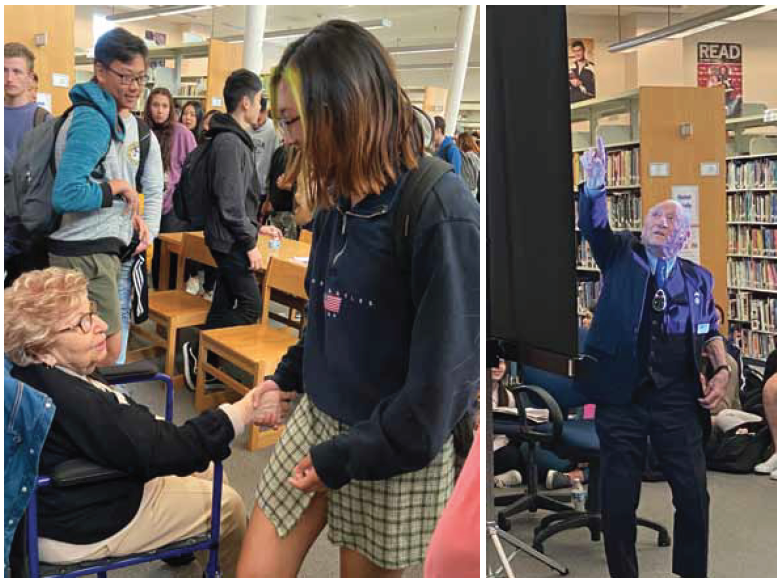 LEFT: A student shakes the hand of Holocaust survivor Edith Frankie after hearing Frankie’s stories of survival.