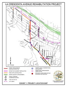 La Crescenta Avenue is a busy street especially during the week. The project will have a lot of construction including sewer improvements, reconstruction of: curbs and gutters, alley aprons, driveways and sidewalks; pavement replacement and removal of a travel lane in each direction, the addition of a center two-way left turn lane and the installation of new, protected bicycle lanes and buffered bicycle lanes.