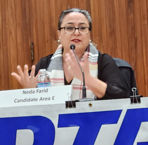 Two candidates are vying for one seat in trustee area E. They are Neda Farid, past president of the Glendale Council PTA and GUSD parent; and Aneta Krpekyan, GUSD parent of two.