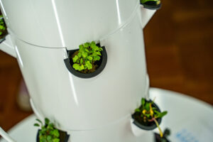 “My mom introduced me to hydroponic towers, which is just a more sustainable way of growing plants and vegetables – anything really – and the nice thing about it is that it grows anywhere. So with drought and our lack of land, these towers are really good because you can put them anywhere and they’ll flourish anywhere,” Roh said.