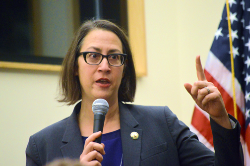 Laura Friedman, assemblymember of the 43rd District, addressed the crowd at the February meeting of the CV Town Council.