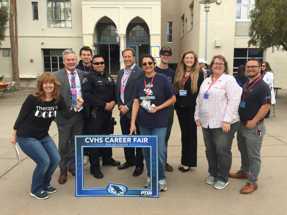A photo-op of CVHS alums who were representing employers at the career fair.