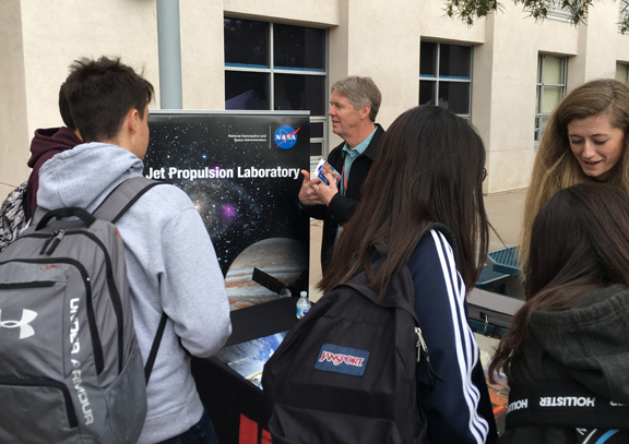 Joe Guinn and Molly Shelton (right) represented JPL at the career fair, drawing many of the scientifically-inclined CVHS students.