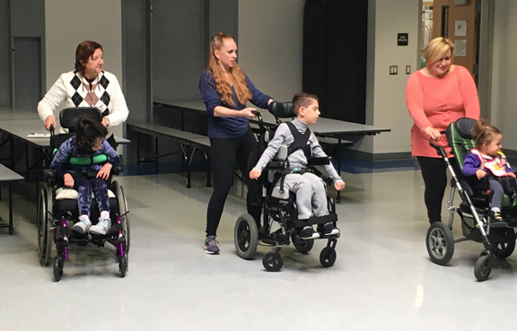The class incorporates lots of everyday activities into the dances Stallcup teaches. Class starts with a “hello” dance and dances include brushing teeth, bouncing balls and, of course, the conga line.