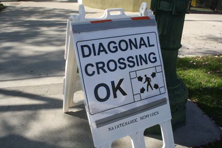 The diagonal crosswalk was a surprise to the MSPA board members and business owners. The city had looked at the most active pedestrian areas in Glendale and found that the intersection in the Montrose Shopping Park was one of the more active. The diagonal crosswalk was a pilot program as part of the city’s street improvement project. It was serving as a preliminary study allowing the city to see if it improved pedestrian traffic.
