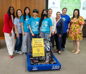 But the main reason teams came was to compete in the Smart-A-Thon trivia contest. With an admonition not to use electronic devices, the competition started with folks having about 20 minutes to answer 70 questions. Trivia questions ranged from “Which of the following is not an oxymoron?” to “Which of the following is not a body of water?” The main prize was split between two teams: the Pasadena-Sierra Madre YMCA and Falkon robotics team 589 from Crescenta Valley High School.