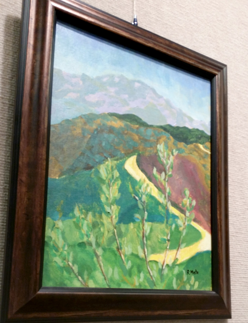 Rebecca Mate, a longtime Sunland artist and the creator of International Art Day, also had her work in this show. Her landscape was painted on the top of a ridgeline in the Verdugo Hills after taking an arduous hike to get the “artist’s view.”