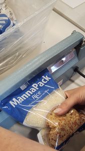 The meals consist of a specially created formula of rice, soy, dried vegetables, and vitamins to ensure maximum nutrition. Volunteers work in teams of 10 to fill “MannaPack” plastic bags with enough grains for approximately six servings then weigh and seal them. The FMSC staff brings all the supplies needed to pack the meals. The completed meal packs are loaded onto a semi truck and taken back to the home location in Tempe, Arizona. There the meals will be sent overseas and to areas of great need in the United States. To date, in 2025 FMSC has distributed food to over 42 countries.