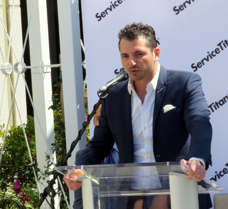 ServiceTitan cofounder Ara Mahdessian addresses the crowd on Monday.