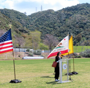 Representing the “world’s largest air quality district [the Southcoast AQMD],” South Pasadena councilmember Cacciotti boasted that Glendale is a model for cities and counties and school districts throughout the county in its move to battery-electric equipment – an entirely green, zero emissions operation.