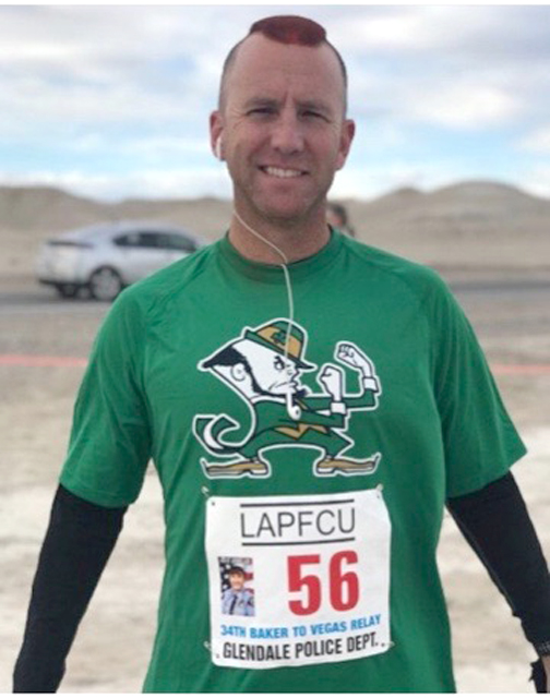 Capt. Tim Feeley of the Glendale Police Dept. tackles a leg of the recent Baker to Vegas Relay held over the St. Patrick Day weekend.
