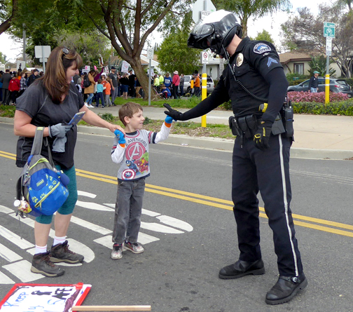 From her front lawn at the corner of Chandler Boulevard and Keystone Street, just across the street from Edison Elementary School, Krista Kline welcomed and waved to the marchers.