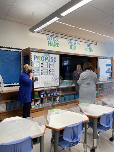 On March 23 elementary teachers and support staff returned to campus. Teachers prepared their classrooms for the return of some of their students though others will continue to learn virtually. This dual teaching method is a challenge for teachers because they want to make certain their attention is equally focused between those students in class and those in virtual studies.