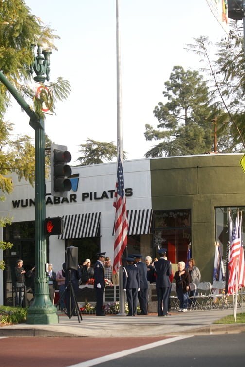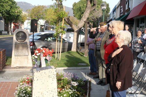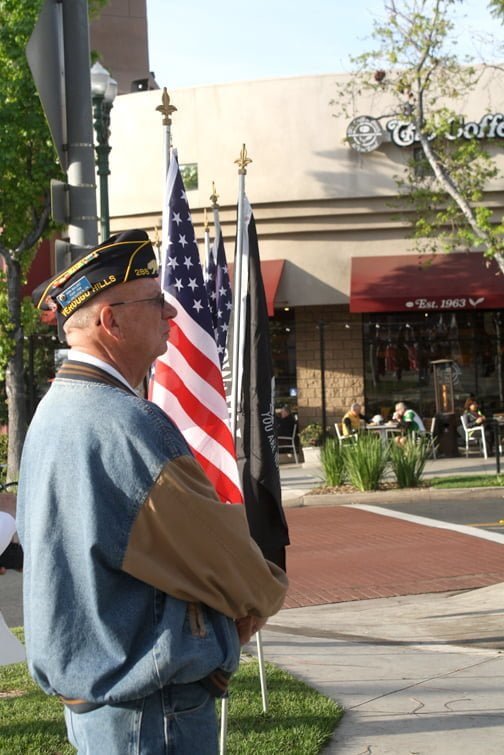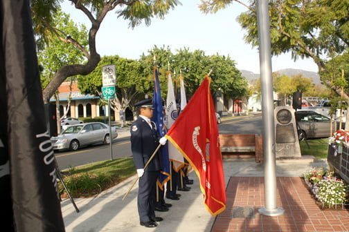The ceremony was held at 8 a.m. and was hosted by the VFW and American Legion. Veterans from all branches of the military were on hand, standing to be recognized when their branch’s song was played. The JROTC from Crescenta Valley High School also made a presentation to honor each branch. Veteran Lynn McGinnis recited a poem about the importance of America’s flag, Old Glory, and what it means to soldiers everywhere.