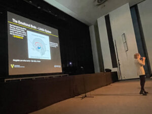 “What I am going to talk to you about today is the impact of stress and substance use on the developing brain,” she told the audience of students.