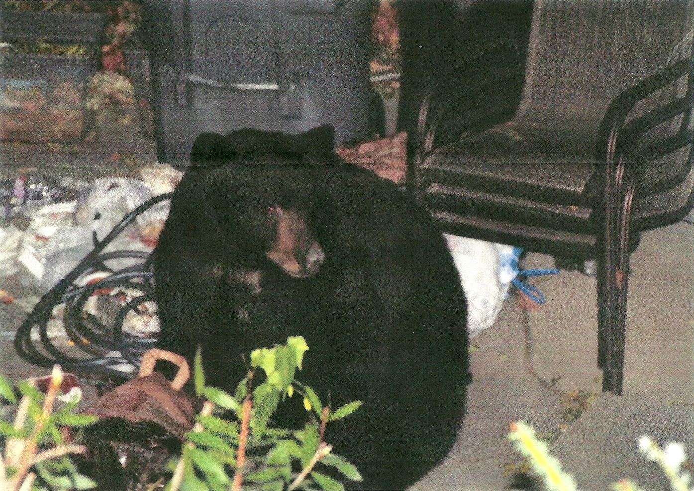 About an hour later, she went outside and her garbage cans were once again tipped over and garbage thrown about – the bear’s signature style.