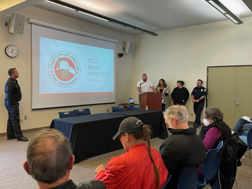The Crescenta Valley Town Council (CVTC) hosted the Los Angeles County Fire Dept. on Tuesday night at the La Crescenta Library community room to discuss the expanded distribution of the revised annual brush clearance notices.