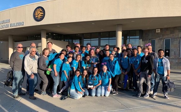 The CVHS robotics team Falkon 589, pictured after winning the coveted Chairman’s Award, is hoping to compete in Houston.