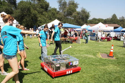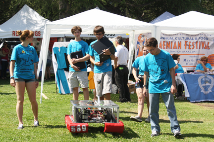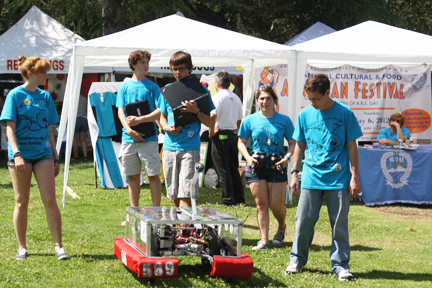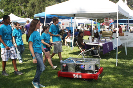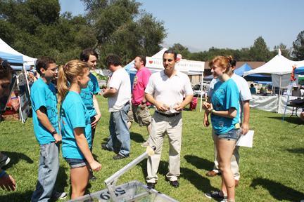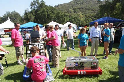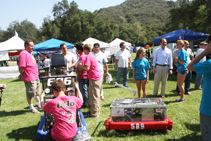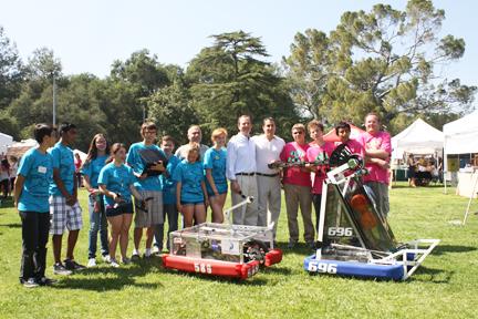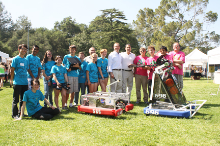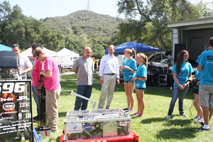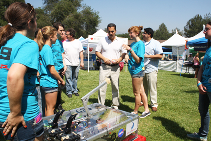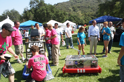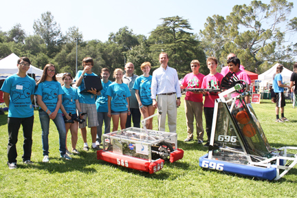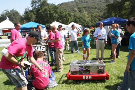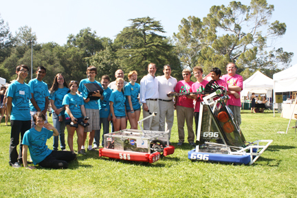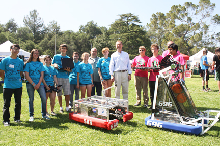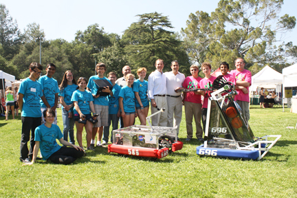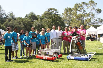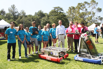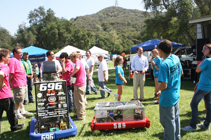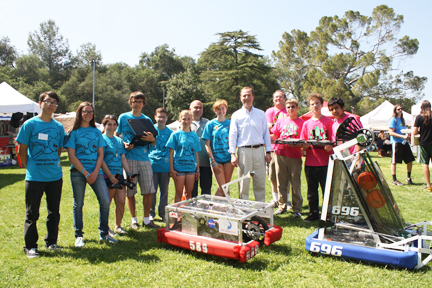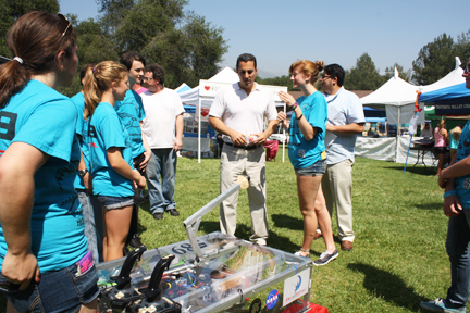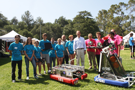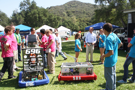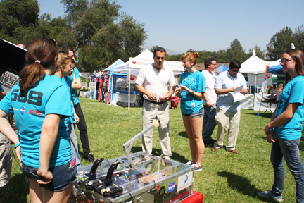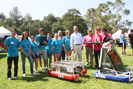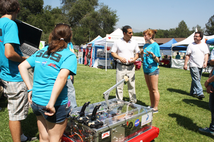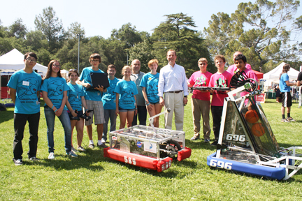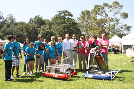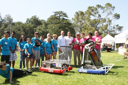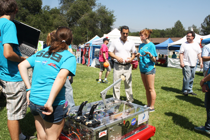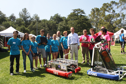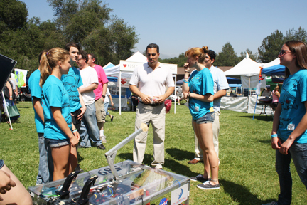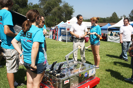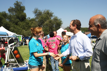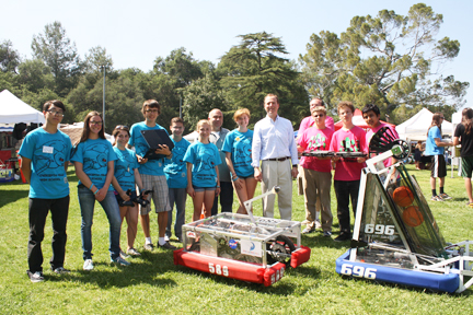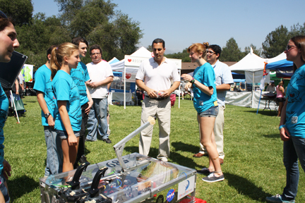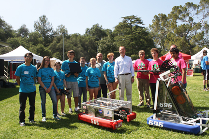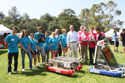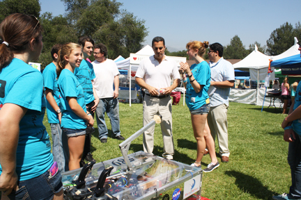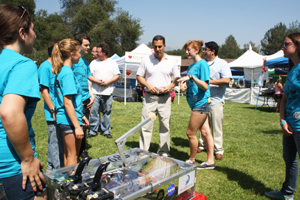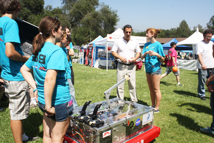 Assemblyman Mike Gatto visited the fair and took time to talk to Clark Magnet High School robotics team members.