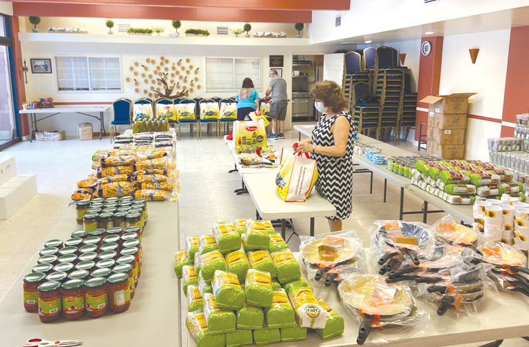 Volunteers at the Meher & Satig Der Ohanessian Youth Center in Montrose create packages that will be delivered to those in need.