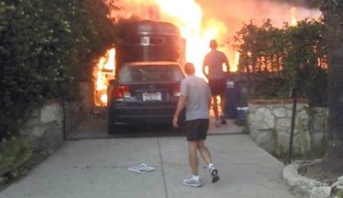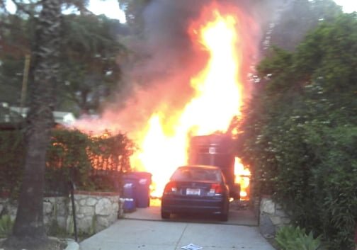 L.A. County Fire Dept. arrived and quickly knocked the fire down.
