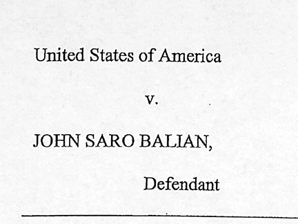 If Balian is found guilty of the charge of making false statements to federal investigators, he could face a maximum sentence of five years incarceration. The case is being prosecuted by Asst. U.S. Attorney Jeff Mitchell of the Violent and Organized Crime Section.