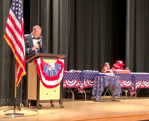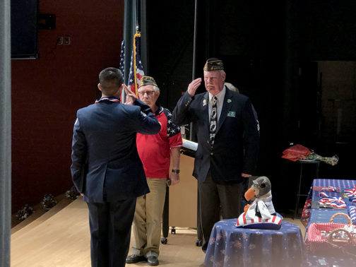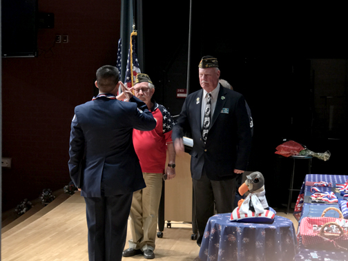 CVHS JROTC Lt. Col. Dave Worley, teacher/mentor, describes the traditions behind the folding of the American flag.
