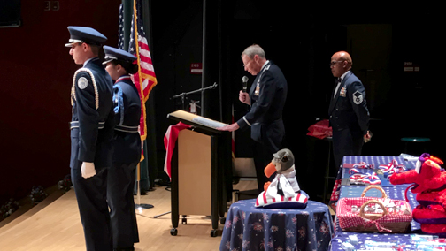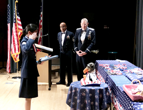 Saturday’s banquet was a mix of fun and respect, which parallels the program’s values. The cadets were presented with awards by representatives of national organizations and honored guests that included Lt. Col. Robert Friend, a Tuskegee Airman who served in the 332nd Fighter Group in World War II. Friend has visited the JROTC in the past and spoke to the cadets, sharing his story.