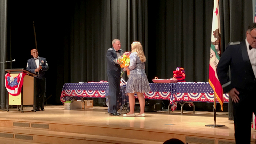 There was a brief moment when Worley was able to recognize the strength behind his leadership, his wife Gayle. He presented her with flowers and, to the delight and cheers of his cadets, gave his wife a kiss.