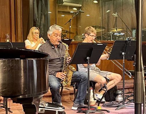 Collins chose the repertoire, wrote the orchestral arrangements, hired the jazz musicians (many returning from last year) and has steadfastly rehearsed them along with four singers handpicked from the congregation: Shawn Kelly, Jennifer Clem, Geoff Bryan and Larry Helscher. He even designed the costumes!